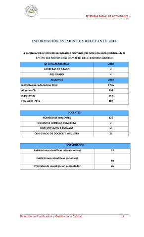 FPUNE con relación a sus actividades en los diferentes ámbitos: