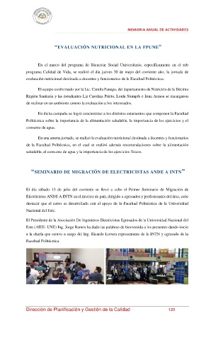 de la Facultad Politécnica, en el cual se realizó además recomendaciones sobre la alimentación