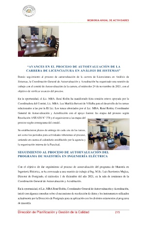 trabajo con el comité de Autoevaluación de la carrera, el miércoles 24 de noviembre de 2021, con el